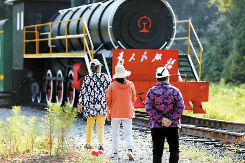 導(dǎo)覽過程中,他特意在山間的八路軍雕像處多停留了一會兒,為游客講述著這里的紅色文化。在邢衛(wèi)兵的帶領(lǐng)下,游客們走過虛擬的“戰(zhàn)場”“防空洞”,來到了紅色文化紀(jì)念館??粗拱?、實物和雕塑,不少游客的神情變得肅穆起來。一旁的邢衛(wèi)兵看在眼里,喜在心頭,挖掘紅色文化這步棋,炭廠村又走對了。